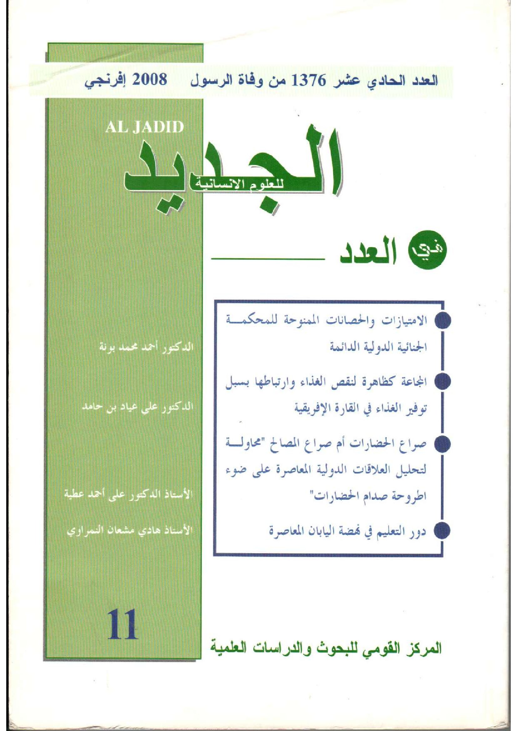 مجلة الجديد للعلوم الانسانية مجلة علمية نصف سنوية محكمة تصدر عن المركز القومي للبحوث والدراسات العلمية، وتعنى بنشر بحوث العلوم الانسانية وما يتعلق بها باللغتين العربية والإنجليزية ، ويمكن أن تصدر في أعداد خاصة لنشر بحوث خاصة بموضوعات معينة أو نشر بحوث مقدمة في ندوات ومؤتمرات علمية .